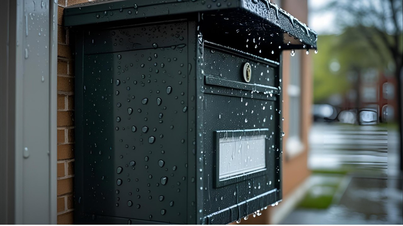 梅雨の長雨や突発的な豪雨、そして台風シーズン、雨風の直撃で郵便受け内部まで水が吹き込むことがあります。