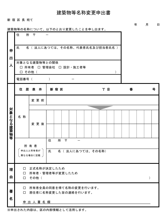 また、旧名称と併記することで、宅配便の誤配などを防止することができますのでご参考下さい。