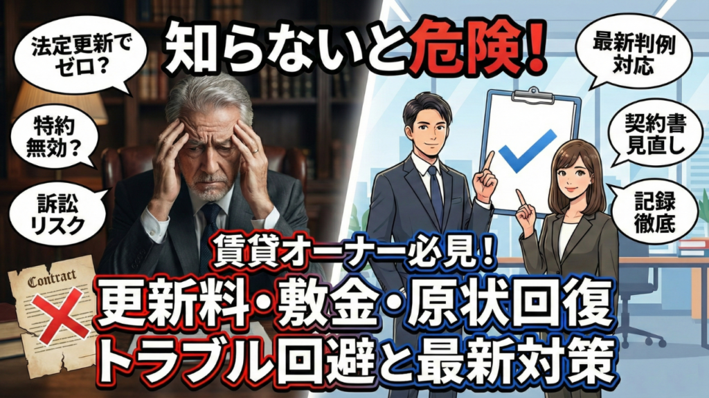 賃貸経営において、「更新料」や「原状回復」は収益確保とトラブル回避の要です。 しかし、契約条項の解釈を誤ると、思わぬ損失や裁判リスクを招くことがあります。 最近の判例や法改正により、従来の「慣習」だけでは通用しないケース
